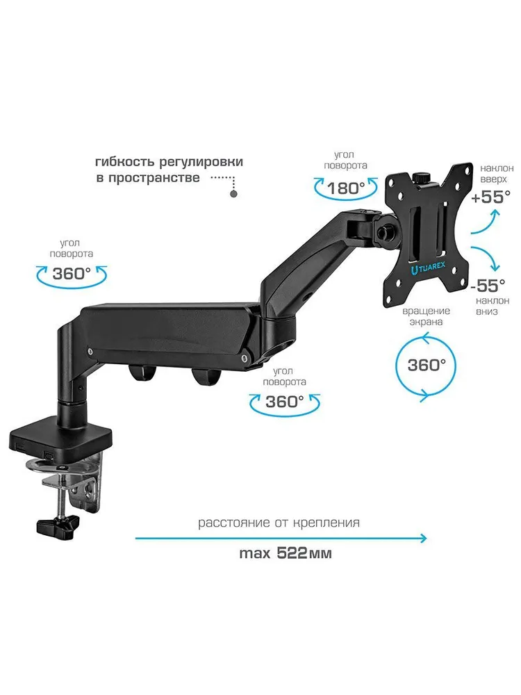 Вращение, Наклон, Поворот, Регулируемая высота