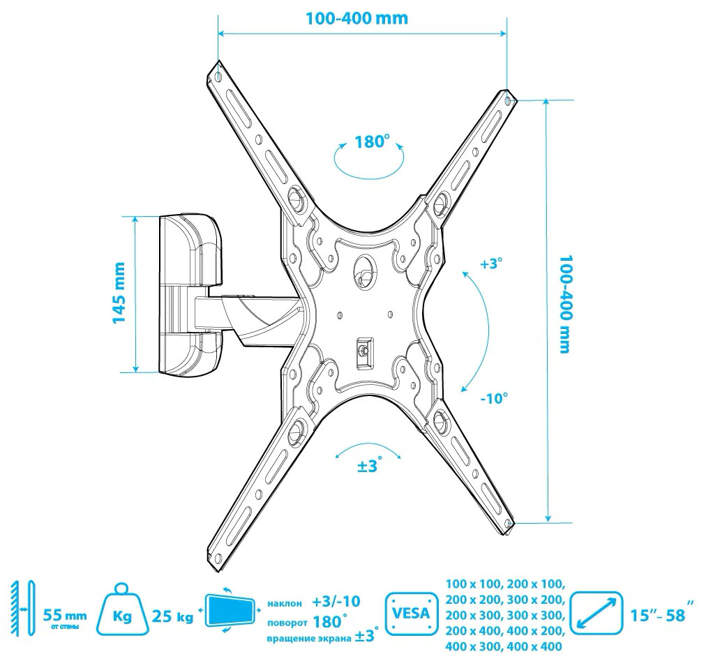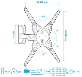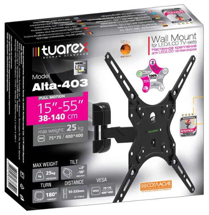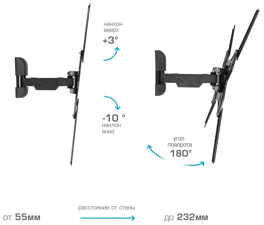 Дополнительная информация: декоративные накладки; кабель-канал; вращение экрана(°) ±3
