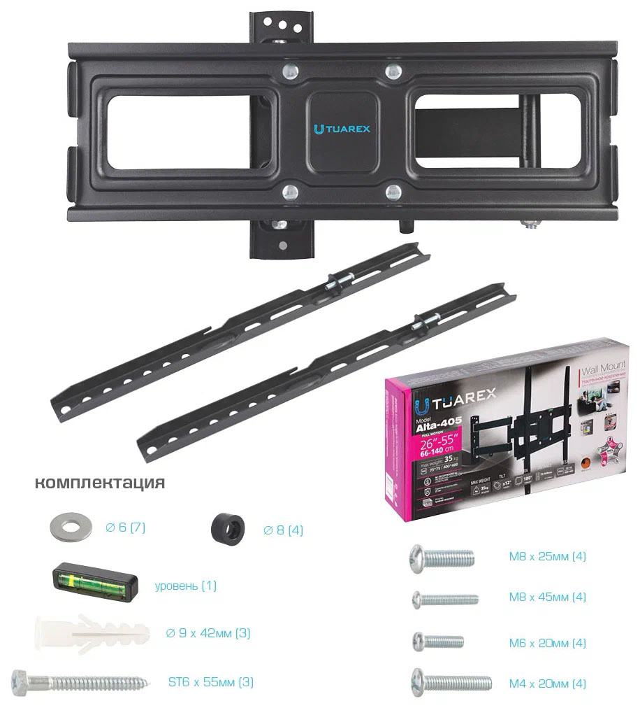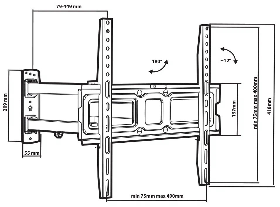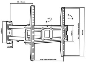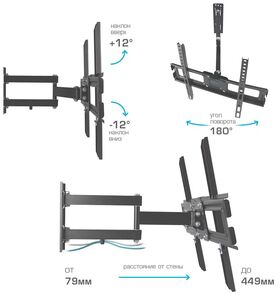 Дополнительная информация: расстояние от стены 79-449 мм, угол наклона -12°+12°, угол поворота 180°, встроенный кабель-канал, встроенный уровень
