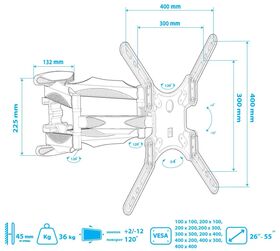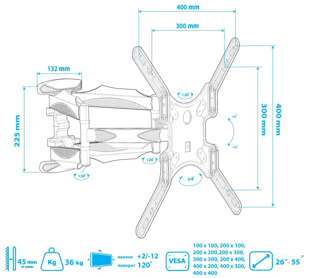 Максимальная диагональ ТВ: 26-55 "