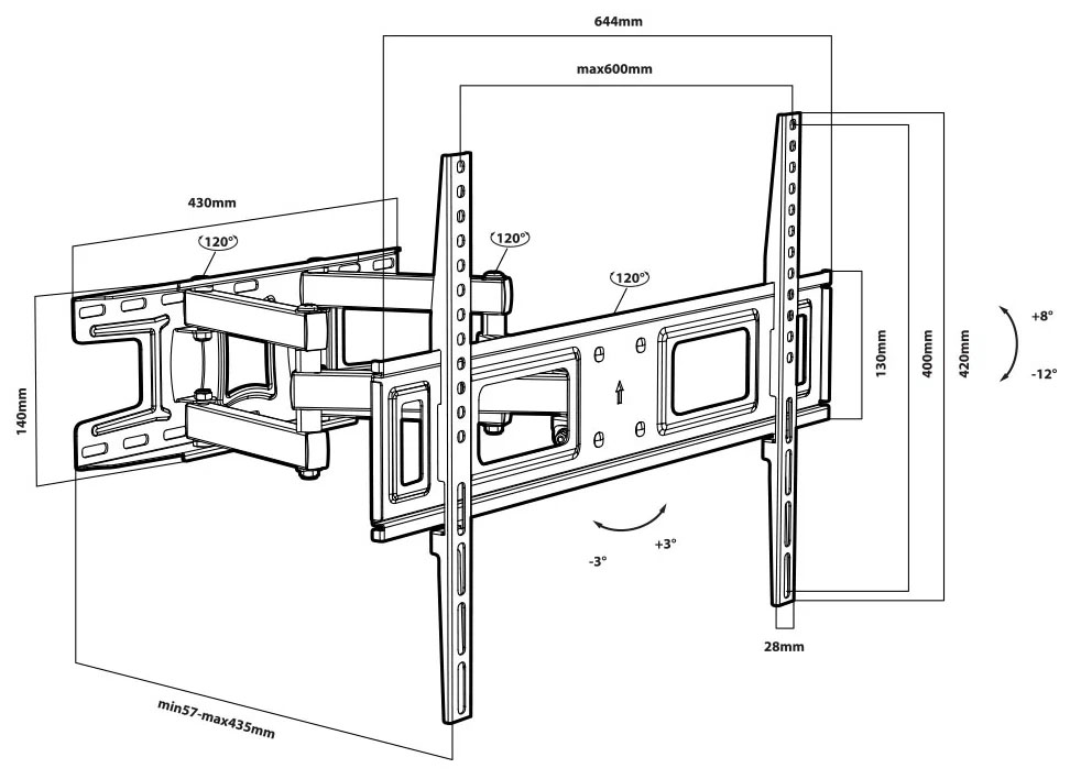 Дополнительная информация: есть кабель-канал, водяной уровень; вращение экрана на ±3° относительно стены