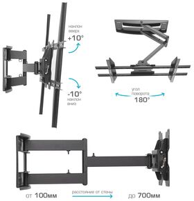 Стандарт Vesa: 200x200 мм, 200x300 мм, 200x400 мм, 300x200 мм, 300x300 мм, 300x400 мм, 400x200 мм, 400x300 мм, 400x400 мм, 400x500 мм, 500x200 мм, 500x300 мм, 500x400 мм, 600x200 мм, 600x300 мм, 600x400 мм, 600x500 мм, 700x400 мм, 700x500 мм