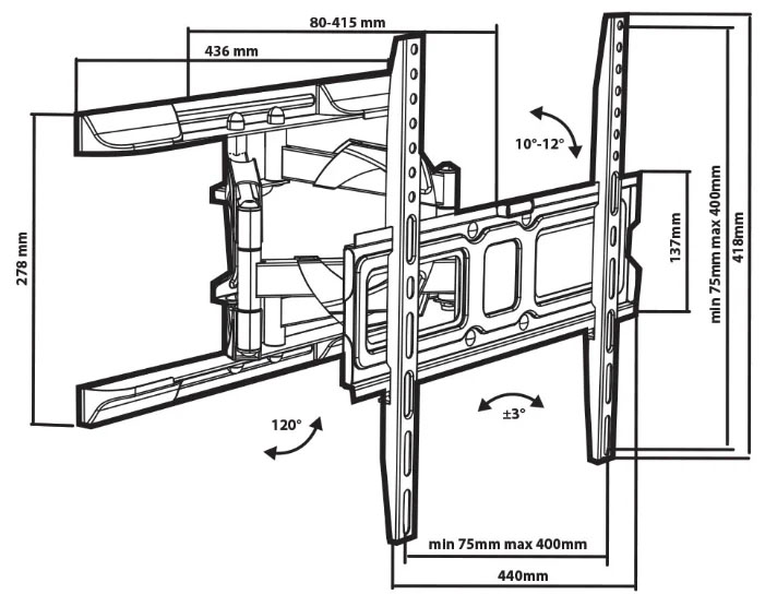 Стандарт Vesa: 100x100 мм, 100x200 мм, 200x100 мм, 400x200 мм, 400x300 мм, 400x400 мм, 75x75 мм