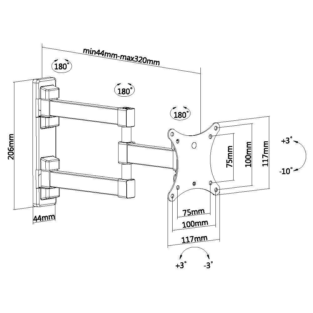 Расстояние от стены: 44~320 мм
