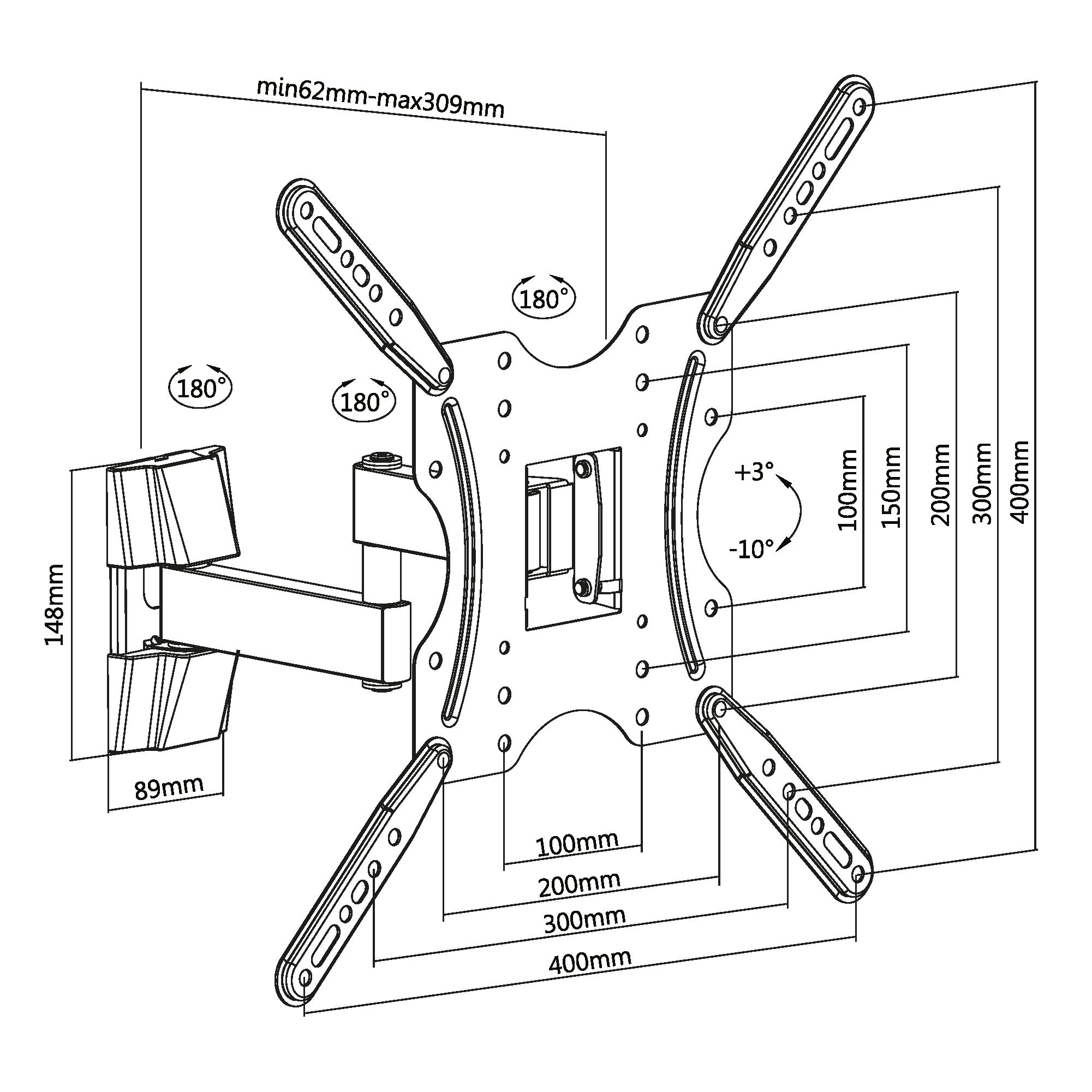 VESA: 100x100, 200x100, 200x200, 300x200, 300x300, 400x200, 400x400