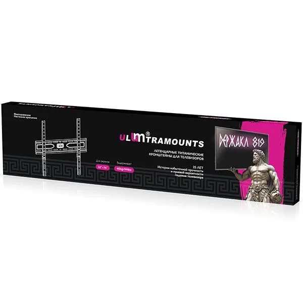 Кронштейн Ultramounts UM819 подходит для телевизоров с диагональю от 32" до 75". Конструктивно данный телевизионный кронштейн является фиксированным с расстоянием от стены 27 мм, что позволяет минимизировать вылет от стены и добиться от подвешенного телевизора эффекта "картины".