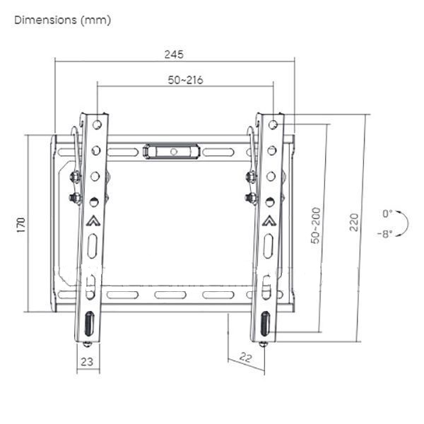 Максимальные посадочные размеры по вертикали, VESA (мм)