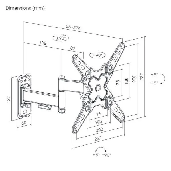 Кронштейн на стену Ultramounts UM956 – это надежное и компактное устройство, которое поможет сэкономить пространство в комнате и разместить телевизор или монитор на любой стене. Он предназначен для приборов с диагональю экрана от 13 до 43 дюймов, выдерживая вес до 20 килограммов. Компактные размеры позволяют устанавливать кронштейн даже в небольших помещениях, а надежная конструкция обеспечит безопасность и долговечность использования. Наклонно-поворотный кронштейн для телевизора ULTRAMOUNTS 956B VESA: 75x75, 100x100, 200x100, 200x200.