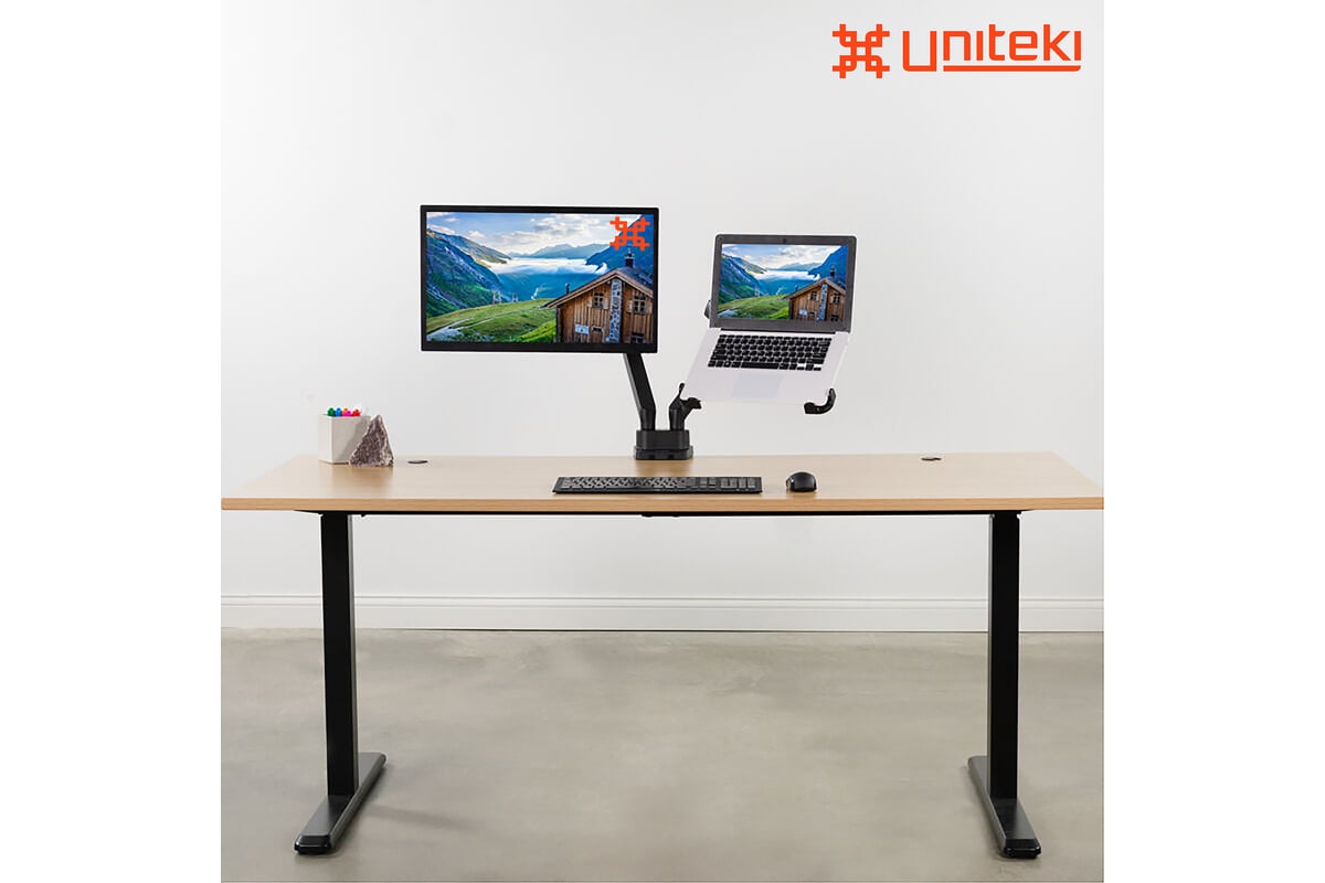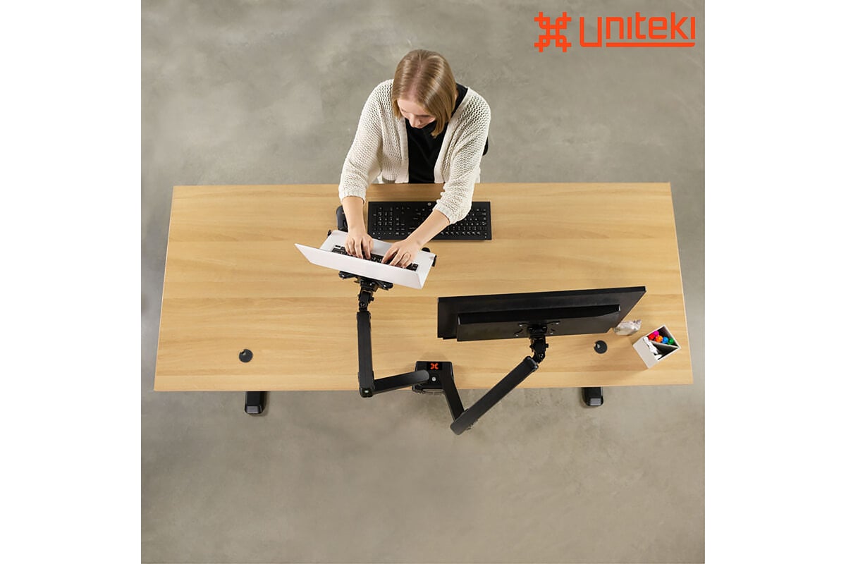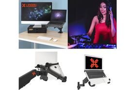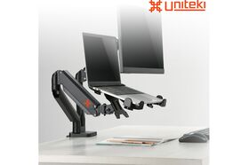 На одном кронштейне UNITEKI с помощью DMN05B может быть установлено от 1 до 2 ноутбуков или планшетов, что существенно облегчает работу в режиме многозадачности и одновременно успешно решает вопрос эргономики рабочего места.