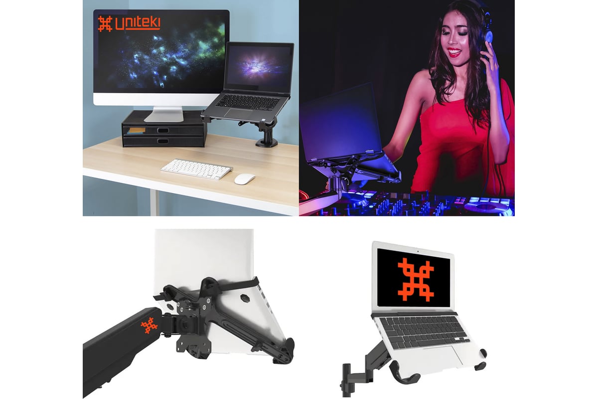 UniTeki-кронштейны-крепления-подставки DMN05B для ноутбука и планшета помогут разместить Ваше устройство максимально комфортно и станут его незаменимыми помощниками на рабочем месте.