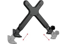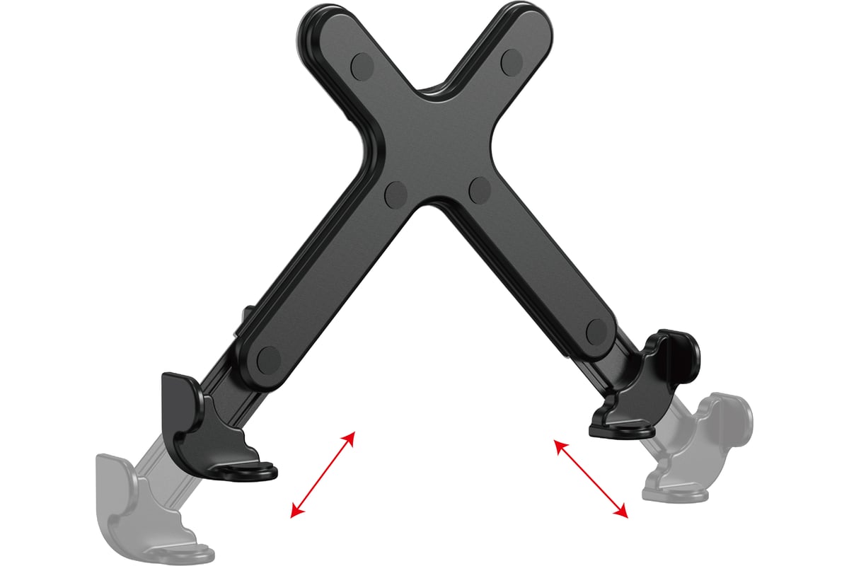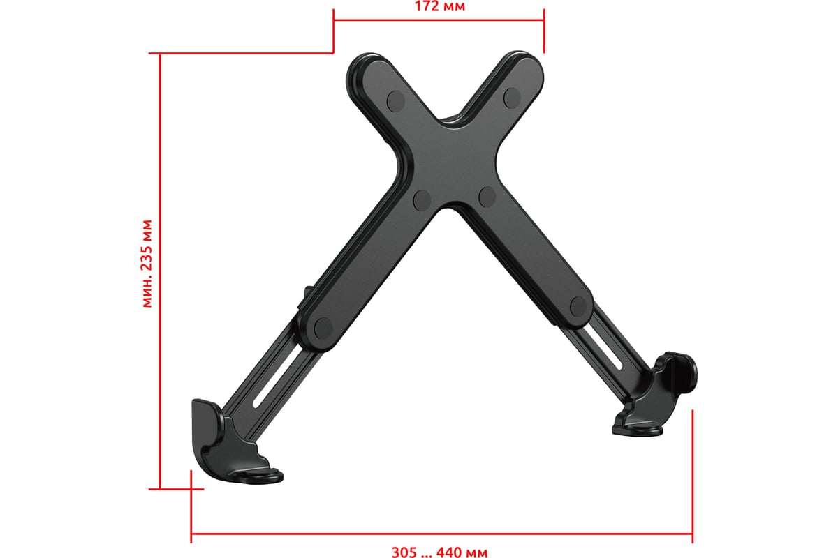 Специальные фиксаторы позволяют настраивать крепление под разные размеры ноутбуков, электронных книг, планшетов и надежно их закреплять специальным зажимом.