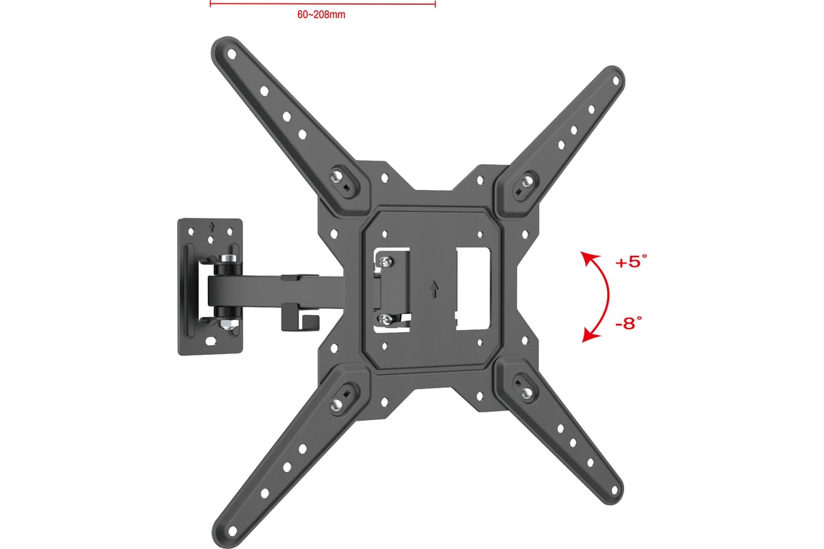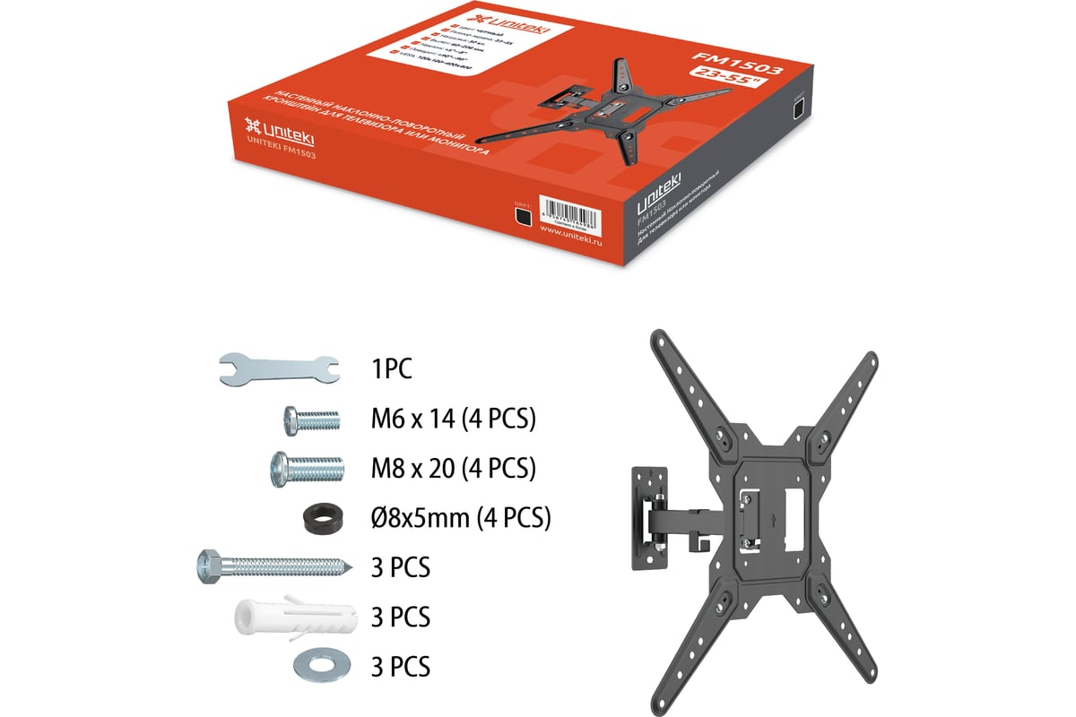 Настенный наклонно-поворотный кронштейн UNITEKI FM1503 предназначен для ТВ с диагональю от 23 до 55 дюймов (58-132 см).