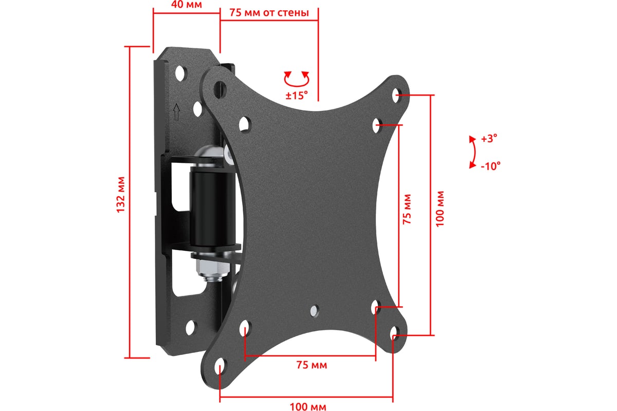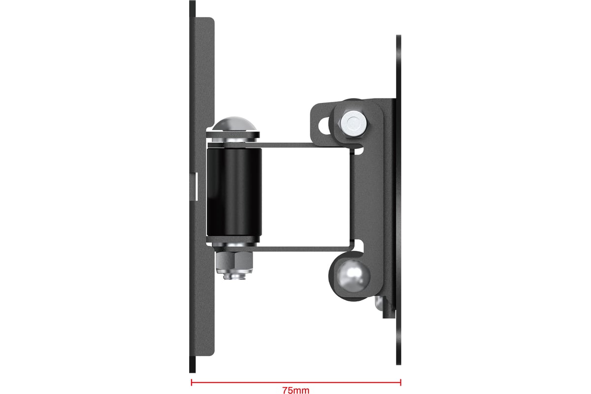 Расстояние от стены составляет 75 мм, что придает кронштейну компактный и аккуратный внешний вид, делая его почти незаметным за вашей ТВ-панелью. Изделие выполнено из холоднокатаной стали SPCC-класса, что означает его прочность и долговечность.