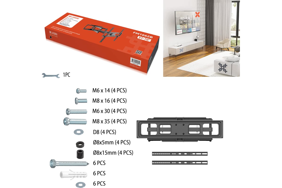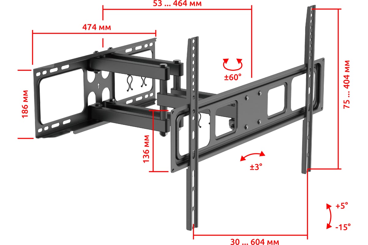 Настенный наклонно-поворотный кронштейн UNITEKI FM1662B в черном цвете предназначен для телевизоров с диагональю от 37 до 70 дюймов (см.: 93 - 177). Он отлично подходит для современных ТВ с широкой линейкой диагоналей и большим весом. Кронштейн выдерживает до 40 кг. Кронштейн является одним из самых маневренных в своей категории. Он обладает широчайшими возможностями наклона и поворота, предусматривает регулировку экрана по вертикали и горизонтали. Крепкий и прочный, при этом элегантный кронштейн черного цвета станет прекрасным дополнением домашнего интерьера. Кабель-канал позволит зафиксировать провода для удобства и эстетичного внешнего вида.