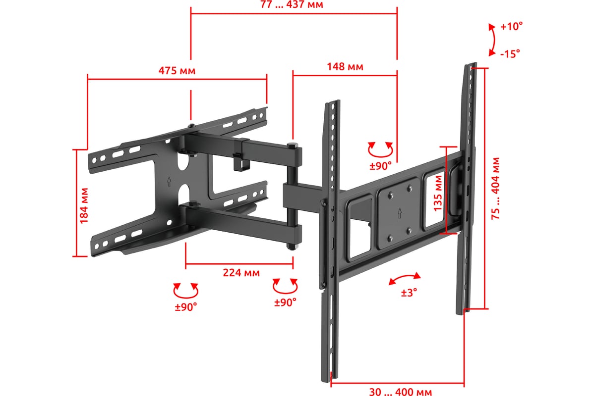 Минимально возможное расстояние от стены составляет 7.7 см., что придает кронштейну компактный и аккуратный внешний вид.
