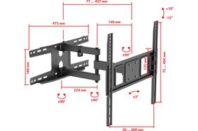 Кронштейн универсален за счет множества предусмотренных производителем размеров VESA от 75x75 до 400x400 мм..