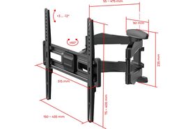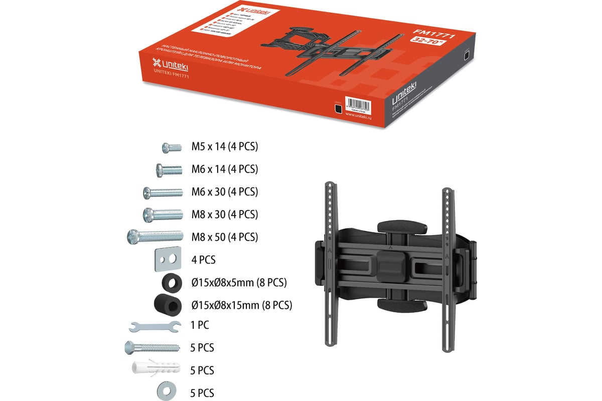 Настенный наклонно-поворотный кронштейн UNITEKI FM1771 в черном цвете предназначен для телевизоров с диагональю от 32 до 70 дюймов (см.: 81 - 177).