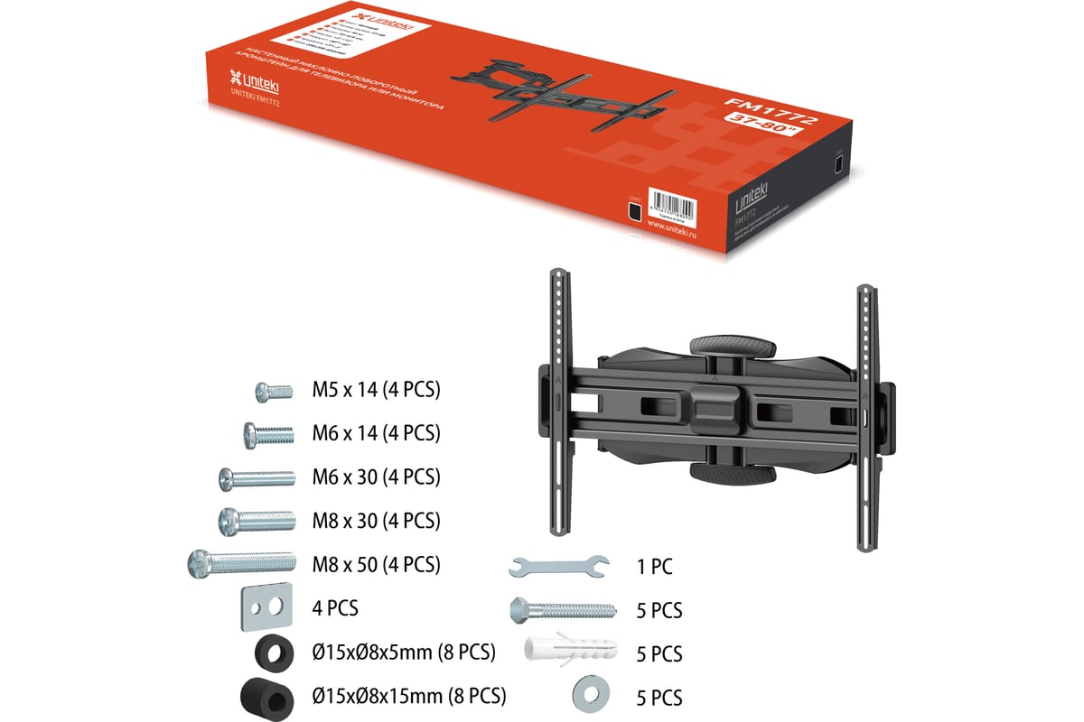 Настенный наклонно-поворотный кронштейн UNITEKI FM1772 в черном цвете предназначен для телевизоров с диагональю от 37 до 80 дюймов (см.: 93 - 203). Он отлично подходит для современных ТВ с широкой линейкой диагоналей и большим весом. Кронштейн выдерживает до 45 кг. Увеличенная площадка крепления к стене обеспечит еще большую надежность Вашей digital-панели и подарит чувство безопасности вам и вашим близким.
