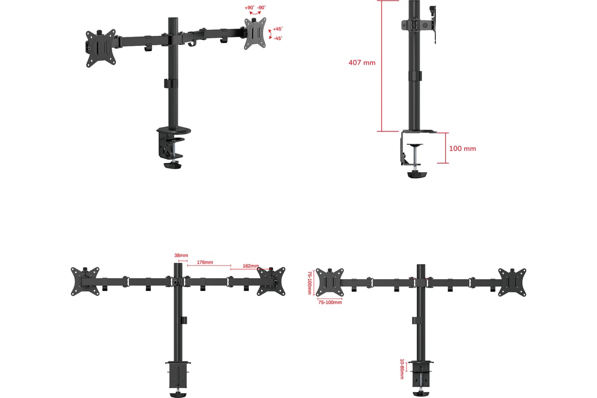 Вы сможете повернуть мониторы и изменить расстояние по высоте на трубе лёгким движением руки, при этом мониторы зафиксируется в настроенном положении.