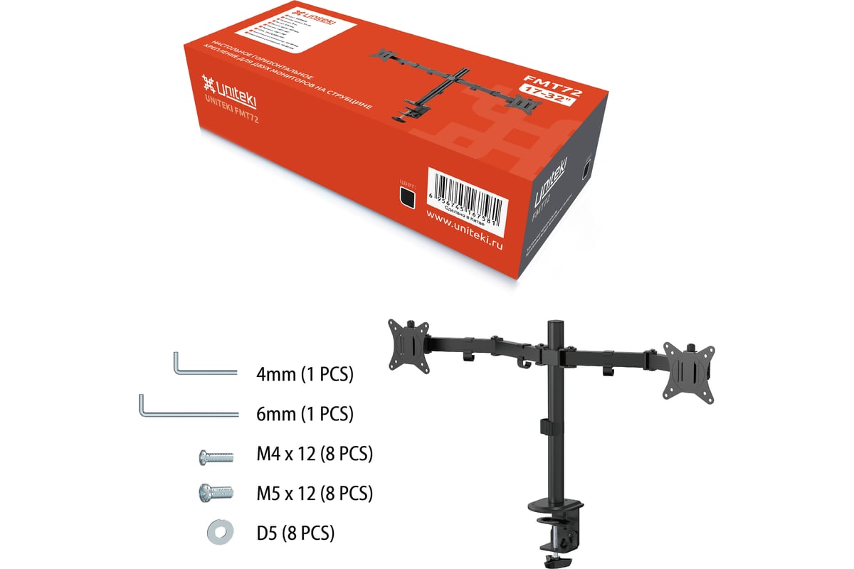 Кронштейн UNITEKI FMT72 не оставит никого равнодушным, не только потому, что он подходит для всех мониторов, диагональю от 17 до 32 дюймов (см.: 43 ~ 81) и весом до 9 кг., но и потому, что позволяет легко и просто передвигать мониторы в любых плоскостях.