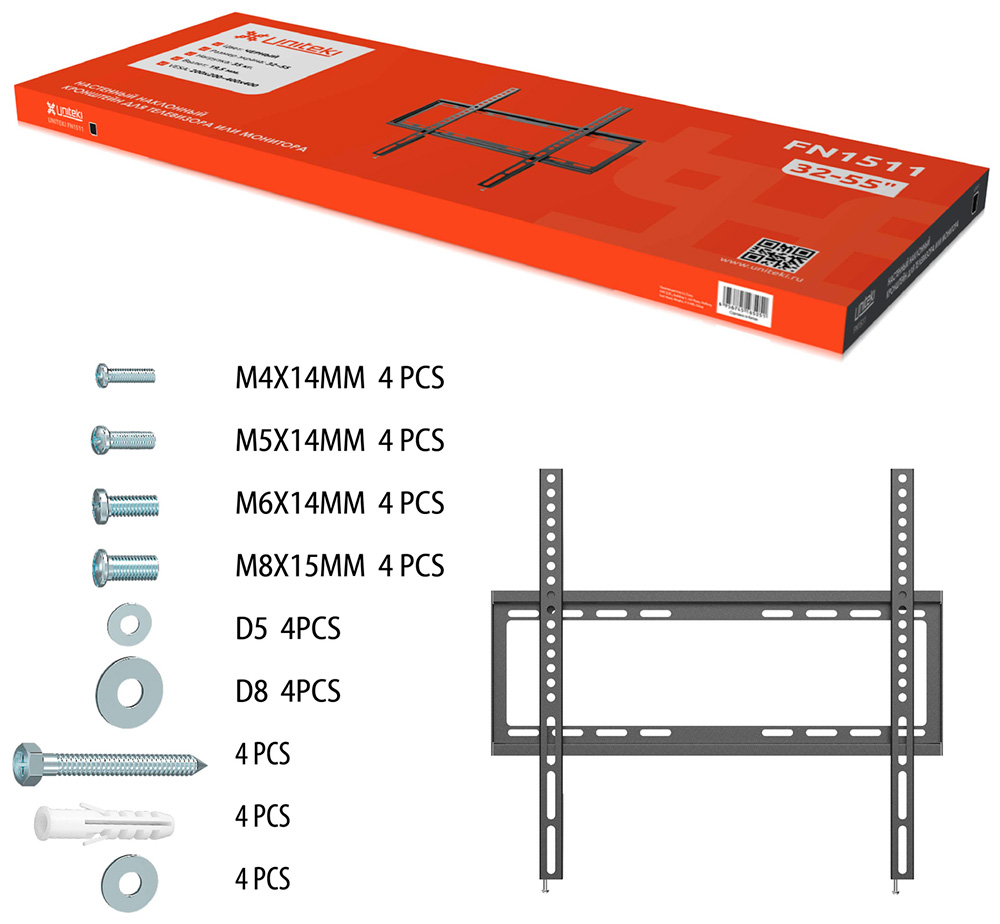 Тип кронштейна: Настенный фиксированный для телевизора или монитора