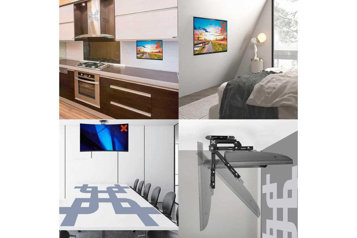 Тип кронштейна: Складывающийся, потолочный, подполочный кронштейн для ТВ или монитора с возможностью навески под мансарду