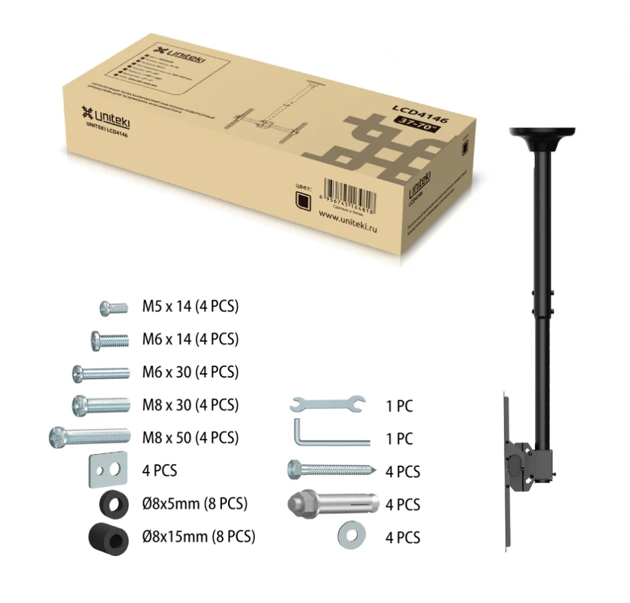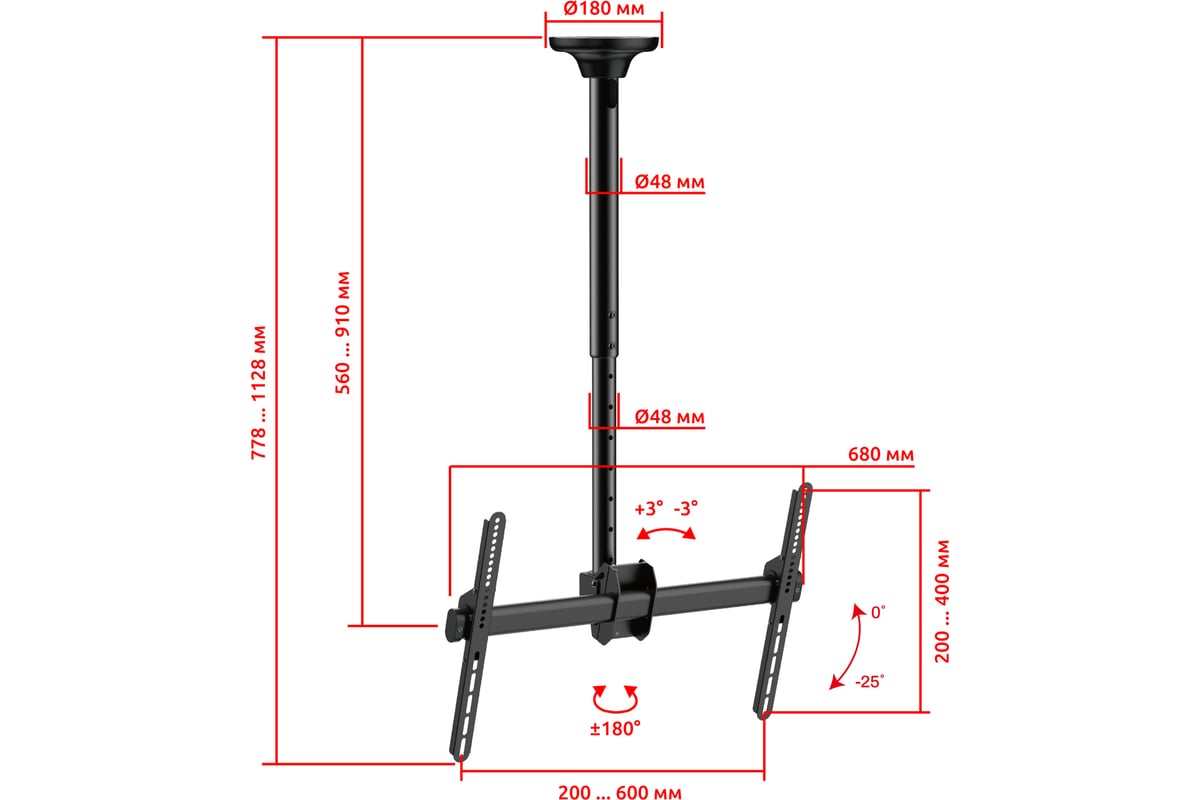 Для поворота телевизора вам не нужно использовать дополнительных приспособлений или прилагать усилия. Вы сможете повернуть ТВ-панель или монитор лёгким движением руки, при этом телевизор зафиксируется в настроенном положении. Кронштейн поставляется в оригинальной упаковке, с подробной инструкцией и широким набором креплений для потолочной инсталляции.