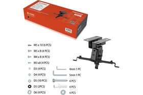 Кронштейн поставляется в оригинальной упаковке, с подробной инструкцией и широким набором креплений для потолочной инсталляции.