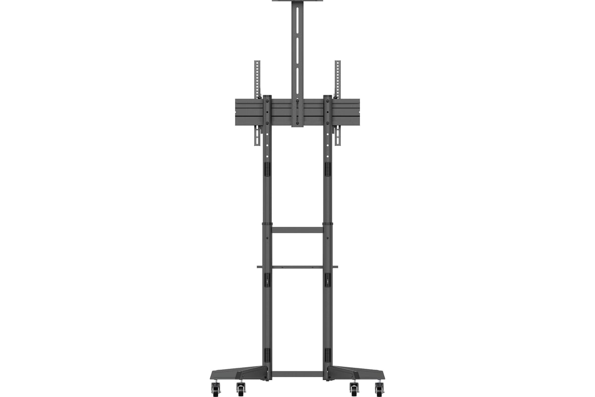 Представляем универсальную, мобильную, стальную, телескопическую стойку для телевизора или монитора на колесах с тормозами и полками для ресивера и WEB камеры, UNITEKI ST006AVB.