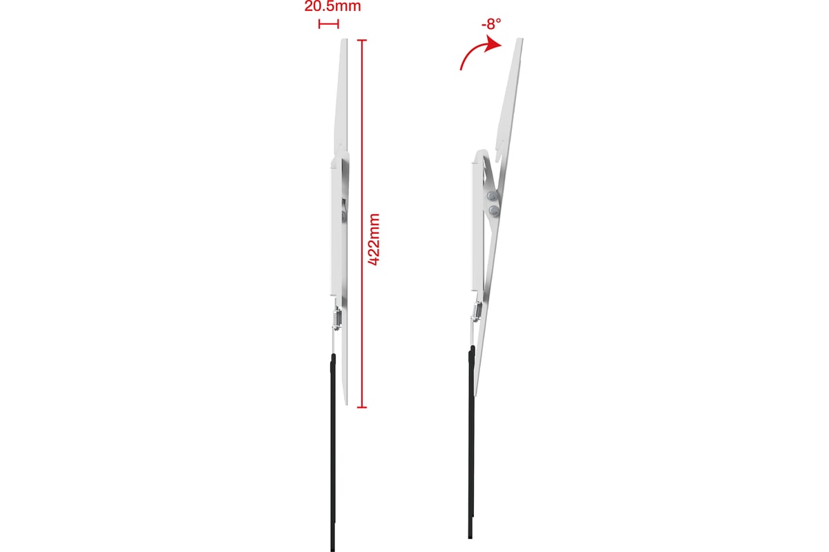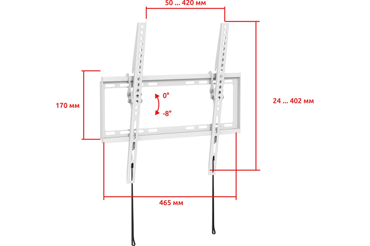 Широкий выбор вариантов монтажных отверстий для установки на стену позволяет надежно зафиксировать кронштейн.