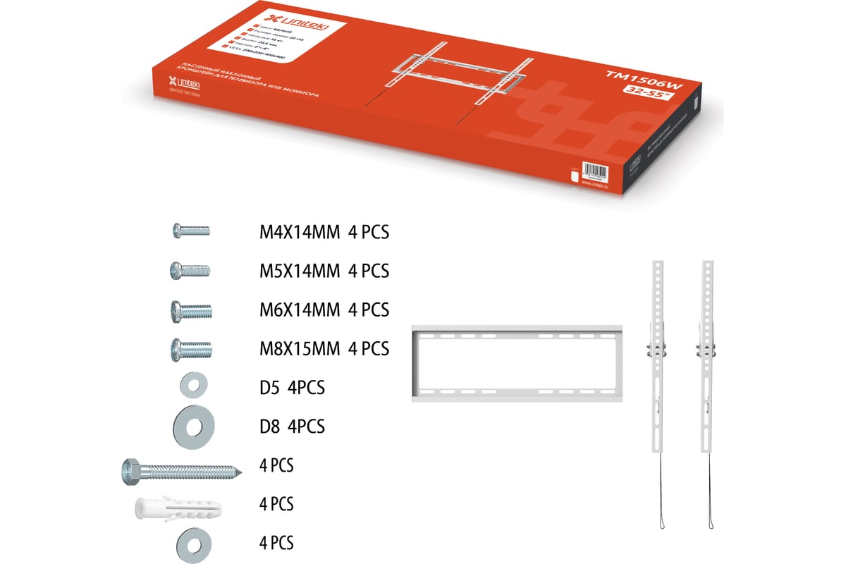 Настенный наклонный кронштейн UNITEKI TM1506W предназначен для телевизоров с диагональю от 32 до 55 дюймов.
