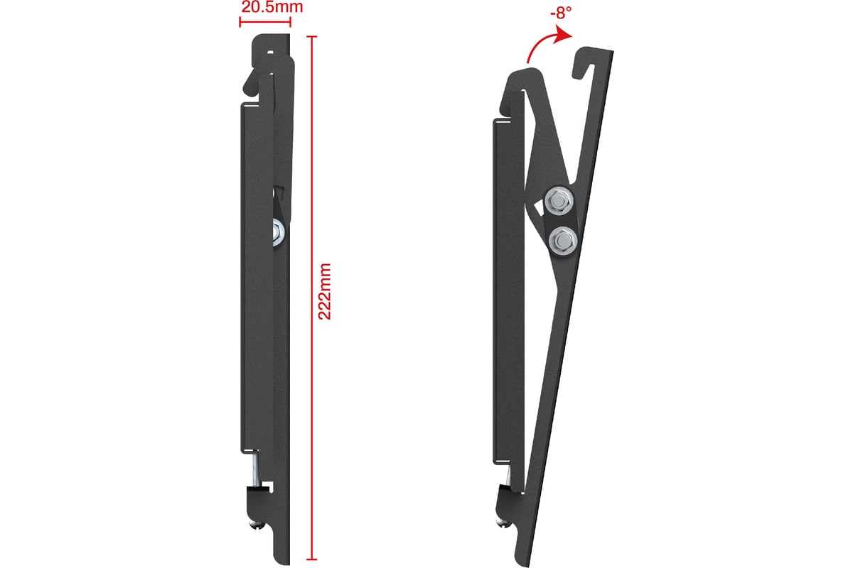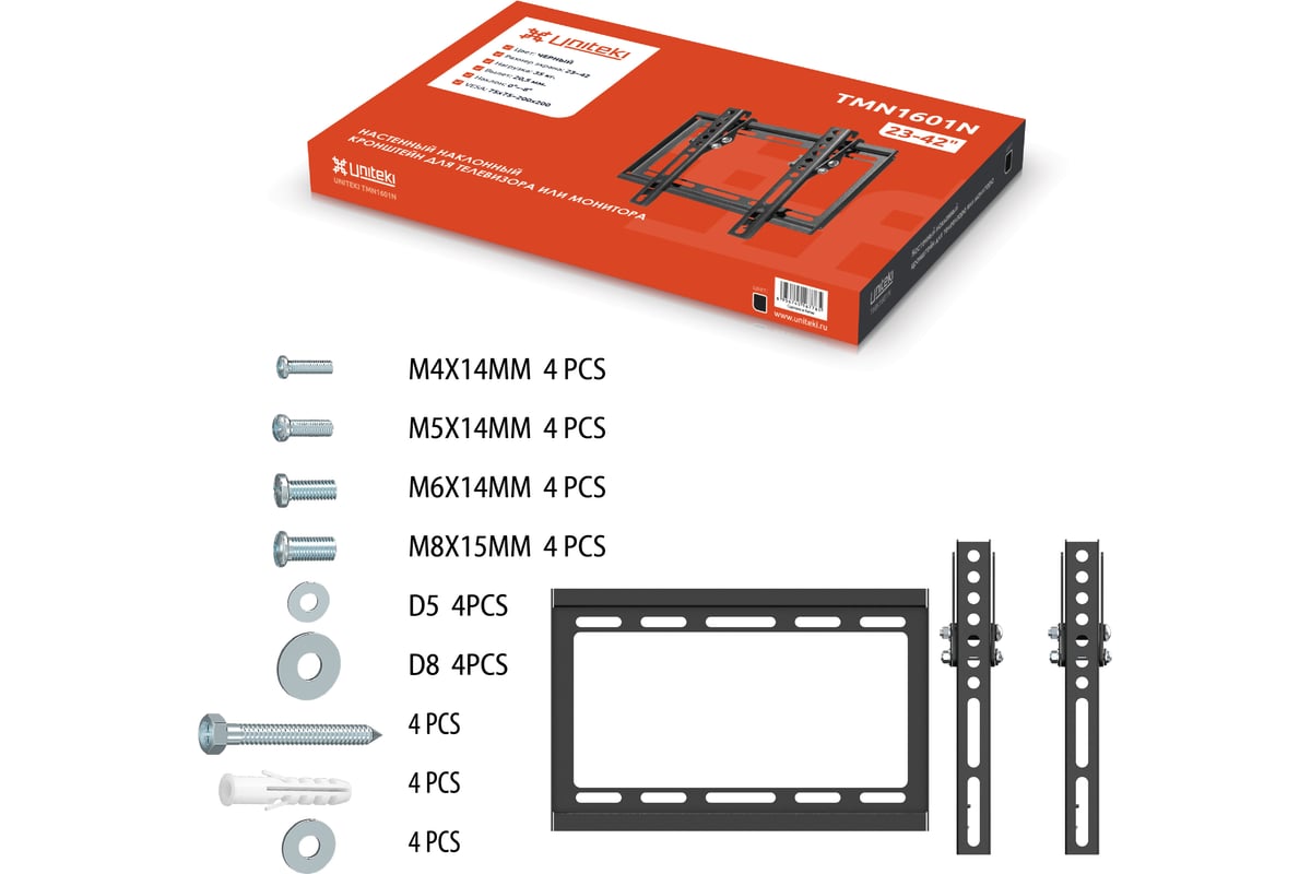 Наклонный кронштейн TMN1601N отвечает высочайшим стандартам качества. Он прочен и долговечен. Настенное крепление для телевизора надежно в работе и безопасно в регулировке. Вы просто крепите основу к стене, а направляющие к телевизору. Качественное исполнение придает кронштейну солидный внешний вид.