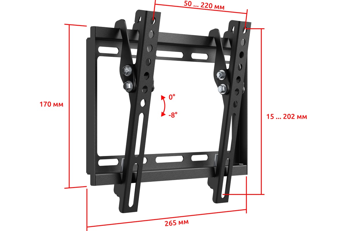 Крепление универсально за счет множества предусмотренных производителем размеров VESA от 50x50 мм. до 200x200 мм. Широкий выбор вариантов монтажных отверстий для установки на стену позволяет надежно зафиксировать кронштейн.