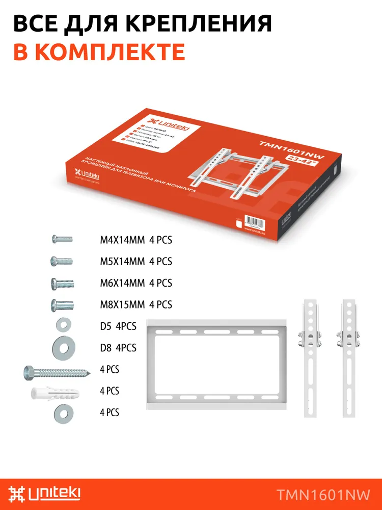 Стандарт крепления VESA: 100x100 мм, 200x100 мм, 200x200 мм, 100x200 мм, 75x75 мм, 50x50 мм, 75x100 мм