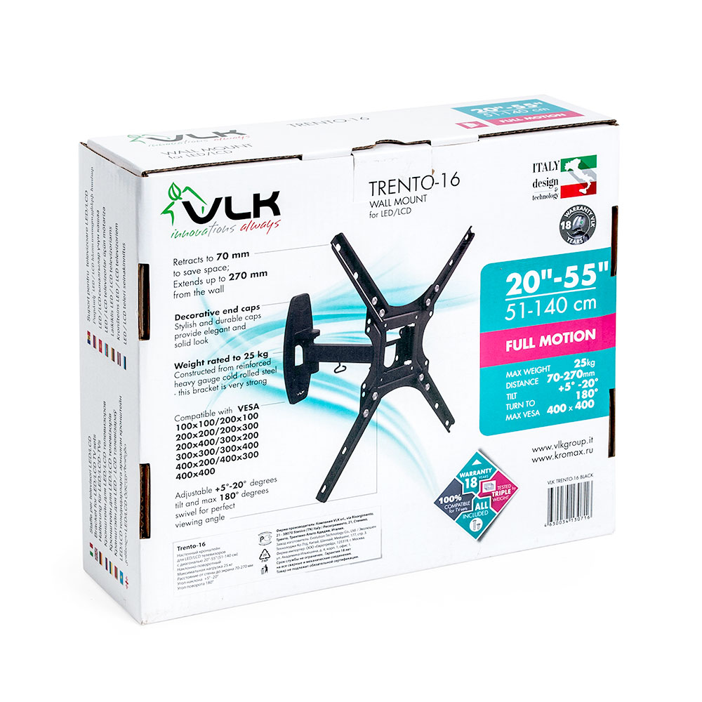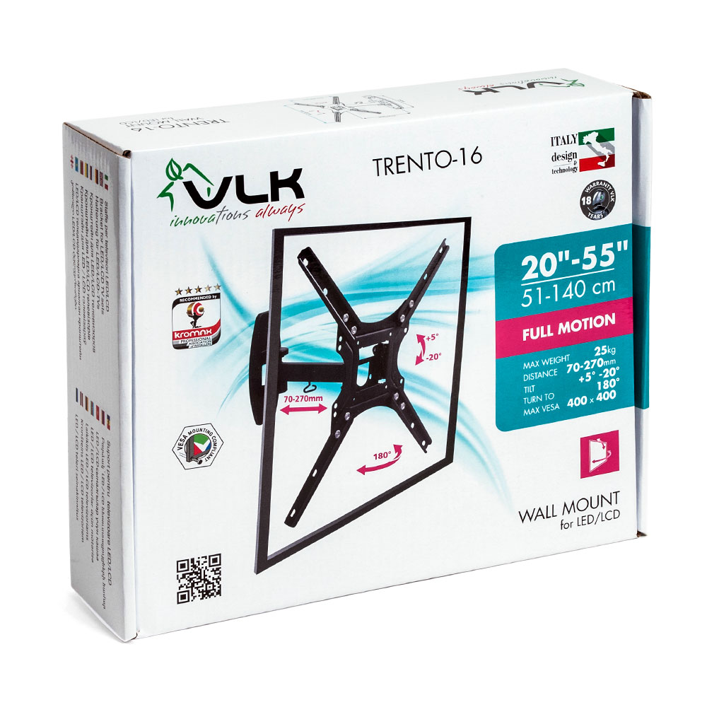 Дополнительная информация: наклон + 5° -20°, поворот 180°, расстояние от стены 70-270 мм