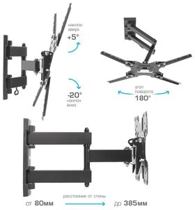 Дополнительная информация: наклон + 5° -20°, поворот 180°, от стены 80-385 мм