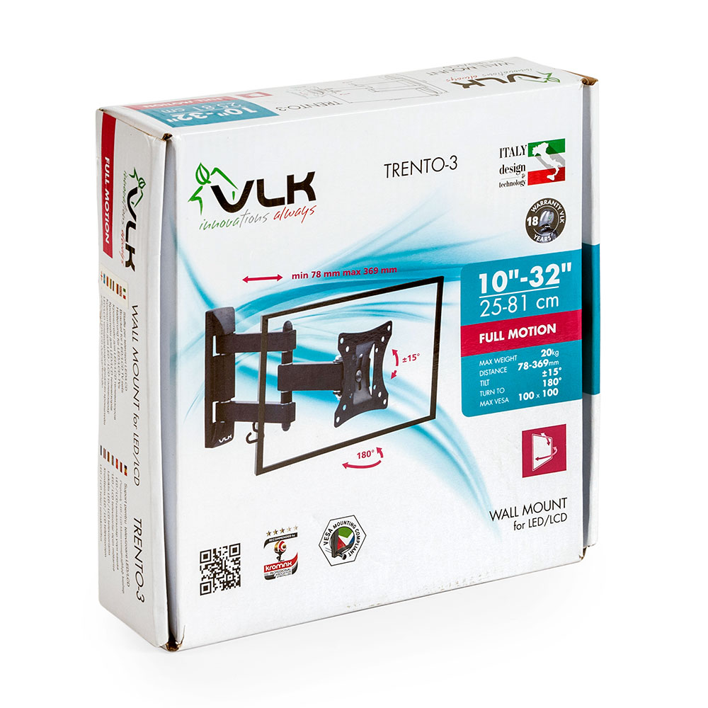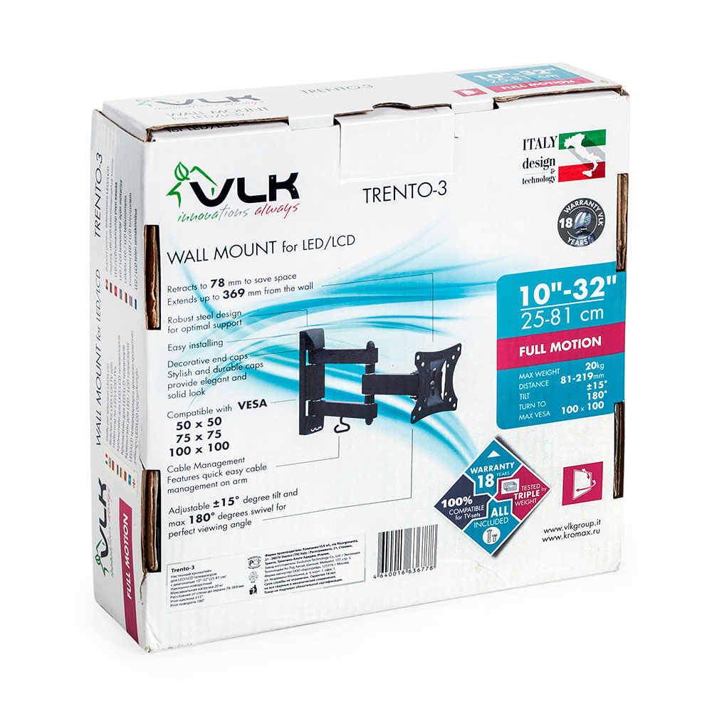 Дополнительная информация: наклон ±15°; поворот 180°; расстояние от стены 78-369 мм