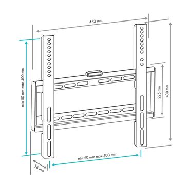 Кронштейн позволяет располагать телевизор максимально близко к стене на расстояние 26 мм от нее, но в то же время сохраняется необходимое расстояние для подключения кабелей и штекеров, а также для розетки, на тот случай, если она находится за телевизором. Стальное крепление отличается своей прочностью и выдерживает вес до 40 кг.