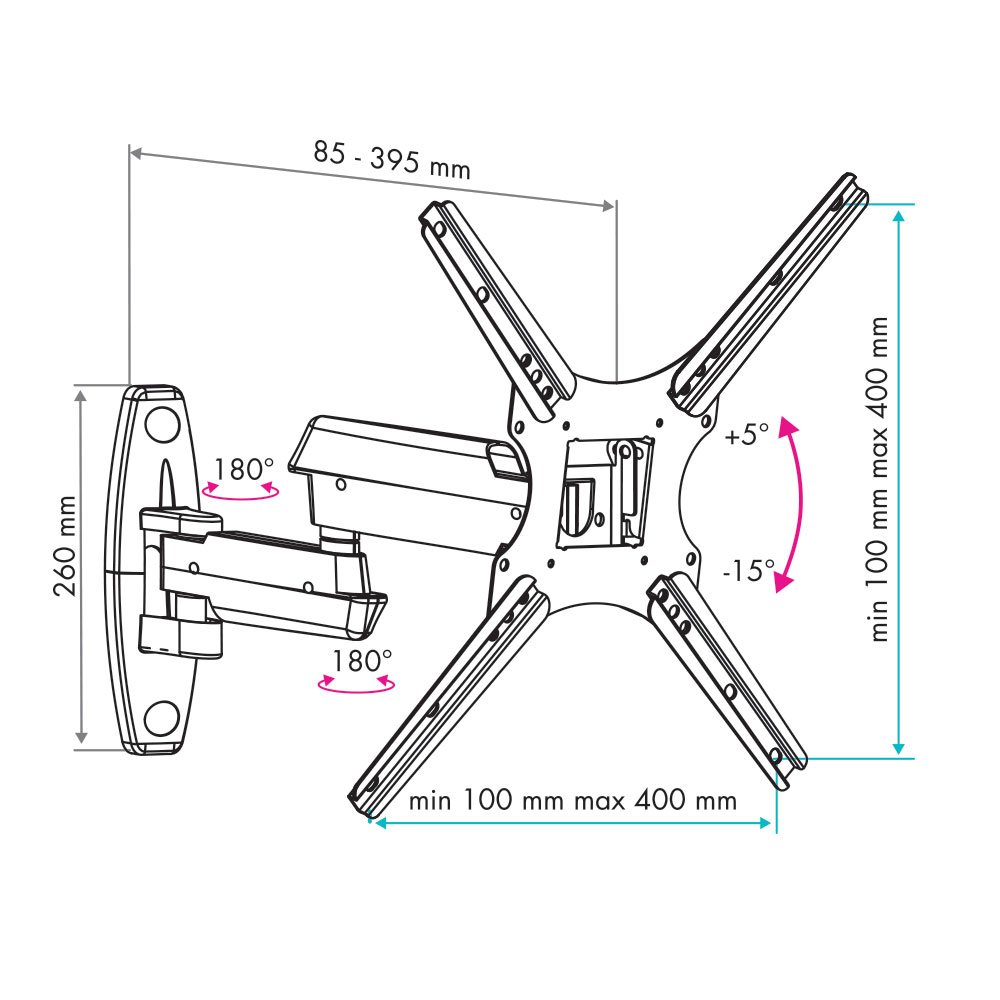 Расстояние от стены (мм): 85-395