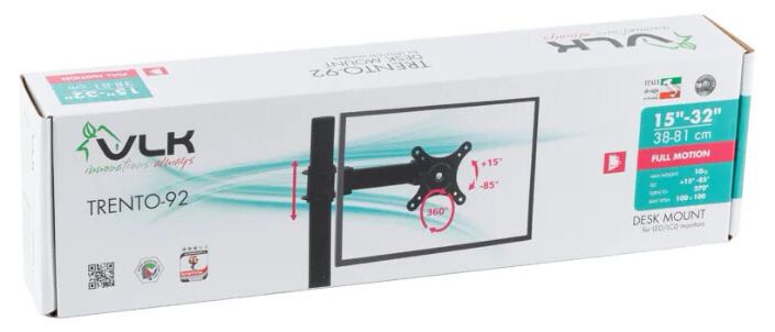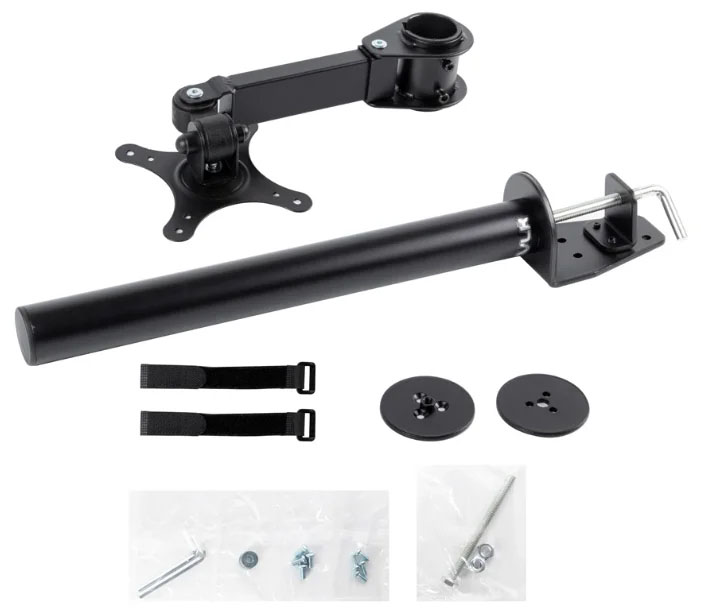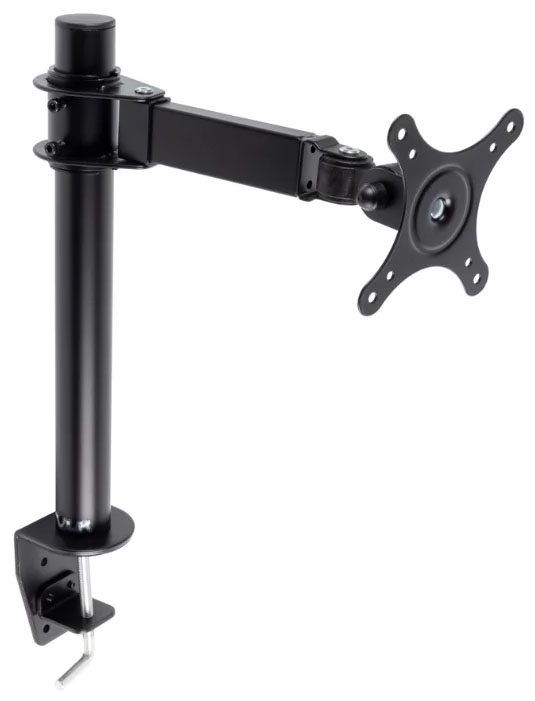 Дополнительная информация: два варианта крепления к столу, регулировка по высоте, угол наклона(°): +15 -85, угол поворота(°): 270, вращение экрана(°): 360, высота штанги 387 мм