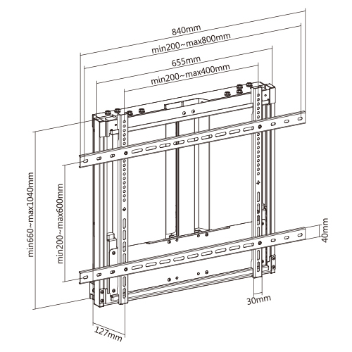 VESA, мм 200 x 200, 300 x 200, 300 x 300, 400 x 200, 400 x 300, 400 x 400, 600 x 400, 700 x 400, 800 x 400, 800 x 600, 800 х 500