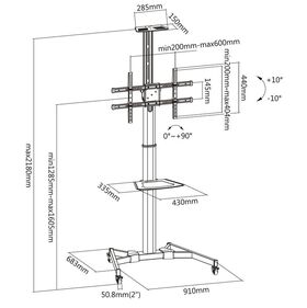 Регулировка высоты ТВ, мм1285 - 1605 (шаг 80 мм)