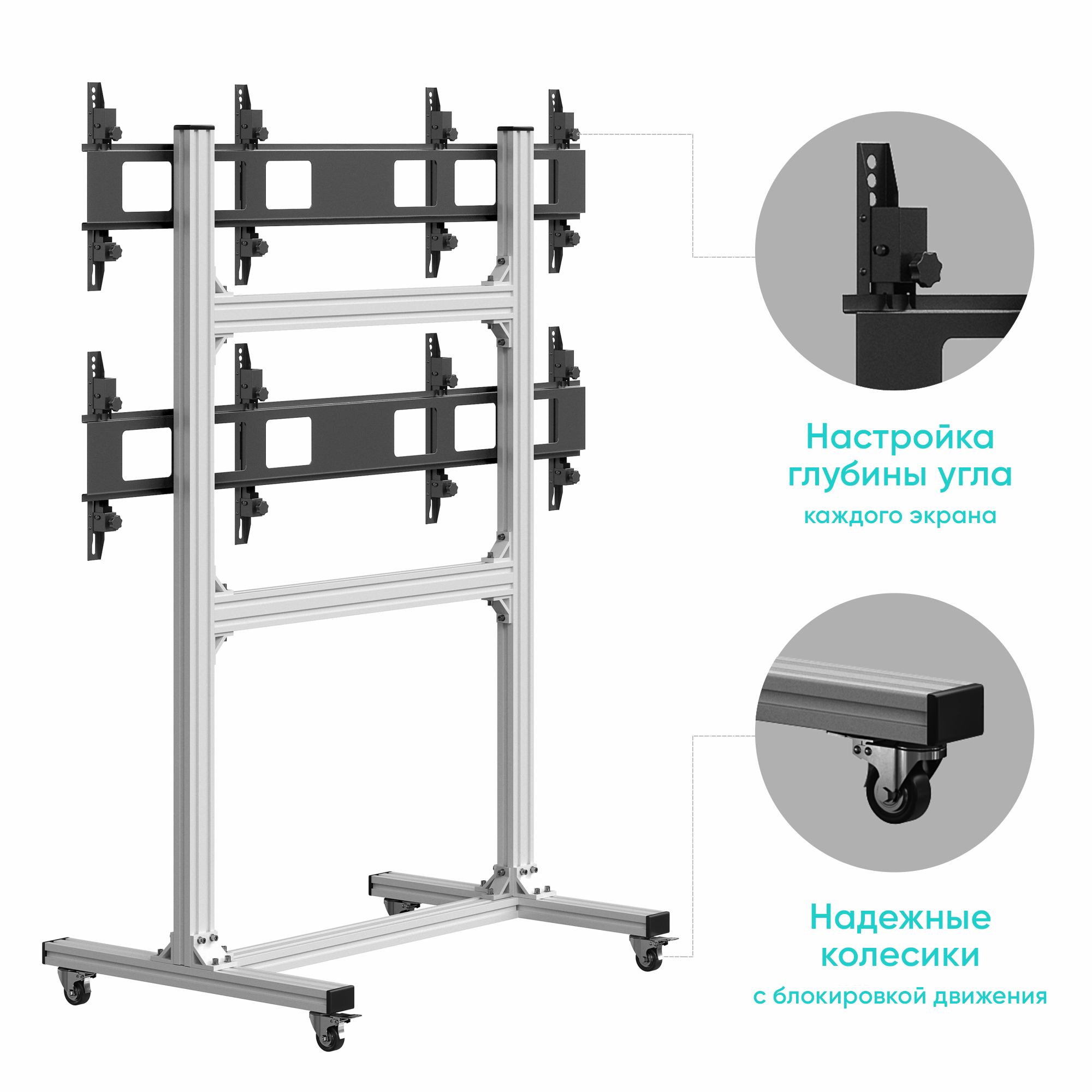Тип кронштейнаМобильная стойка для четырех ТВ