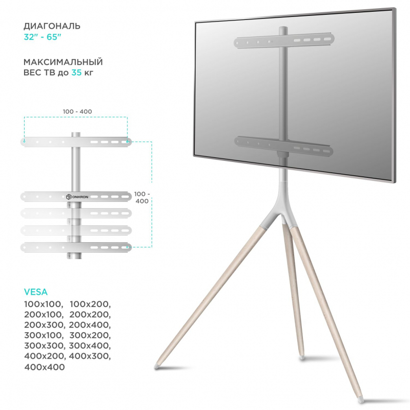 стойка подходит для большинства телевизоров популярных брендов, среди которых Samsung, LG, Sony, KIVI, Tcl, Xiaomi Mi, SUPRA, Panasonic, Hyundai, Erisson, Asano, Horizont, JVC, Thomson, HARTENS, Sharp, Toshiba, Skyworth, BBK, AVEL, Витязь, Веко, BQ, DEXP, SkyLine, Pioneer, Rolsen, Harper, Hisense, Hitachi, Polarline, Prestigio, Telefunken и других.