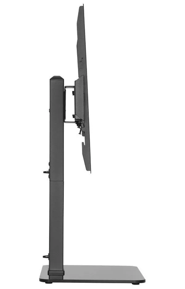 Эта подставка имеет максимальную нагрузку до 40 кг и регулируемую высоту. Она выполнена из металла и стекла и имеет стильный дизайн, который подойдет к любому интерьеру.