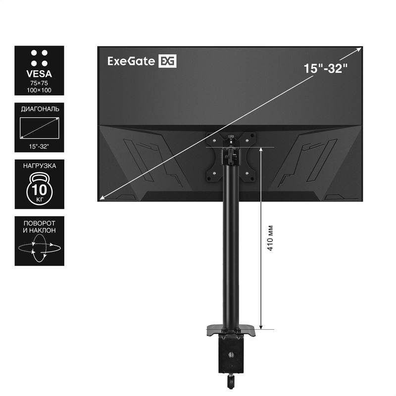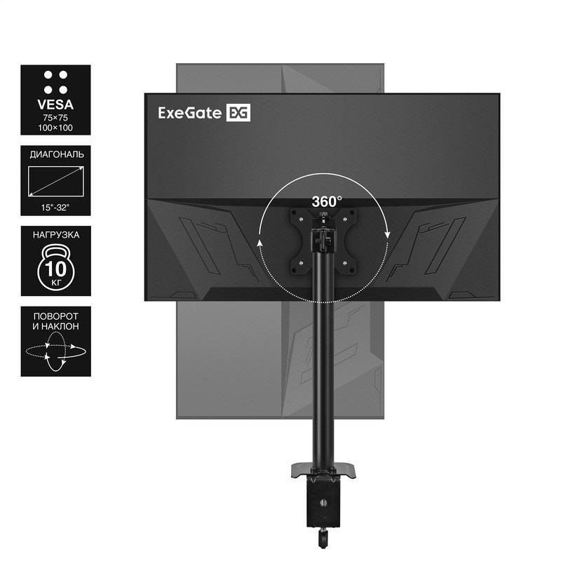 Настольное крепление ExeGate предназначено для установки одного монитора на рабочем месте. Оно позволяет эффективно использовать пространство, обеспечивая удобный доступ к экрану и улучшая эргономику рабочего места. Крепление выполнено из высококачественных материалов, что гарантирует надежность и долговечность в использовании.