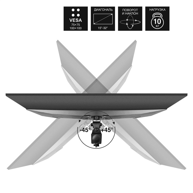 Стабильность: Подставка имеет прочную и устойчивую конструкцию, что обеспечивает надежное удержание монитора без риска опрокидывания.