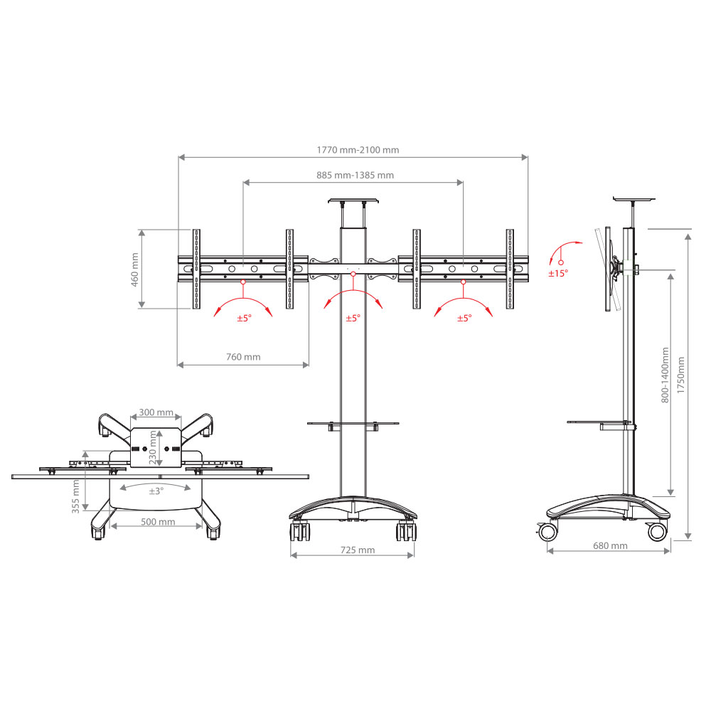 Крепежные отверстия (VESA): 100х100, 100х200, 200х100, 200х200, 300х200, 200х300, 300х300, 200х400, 400х200, 400х300, 400х400, 600х200, 600х300, 600х400, 700х400