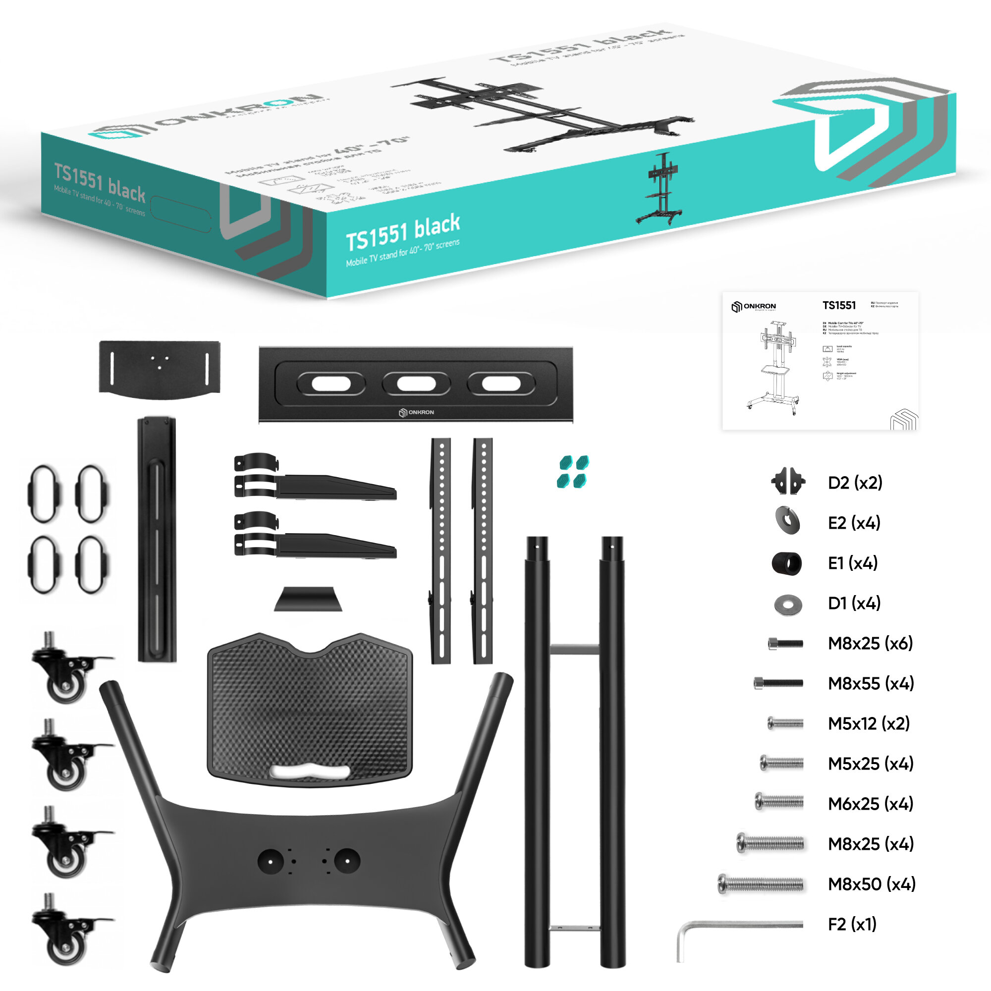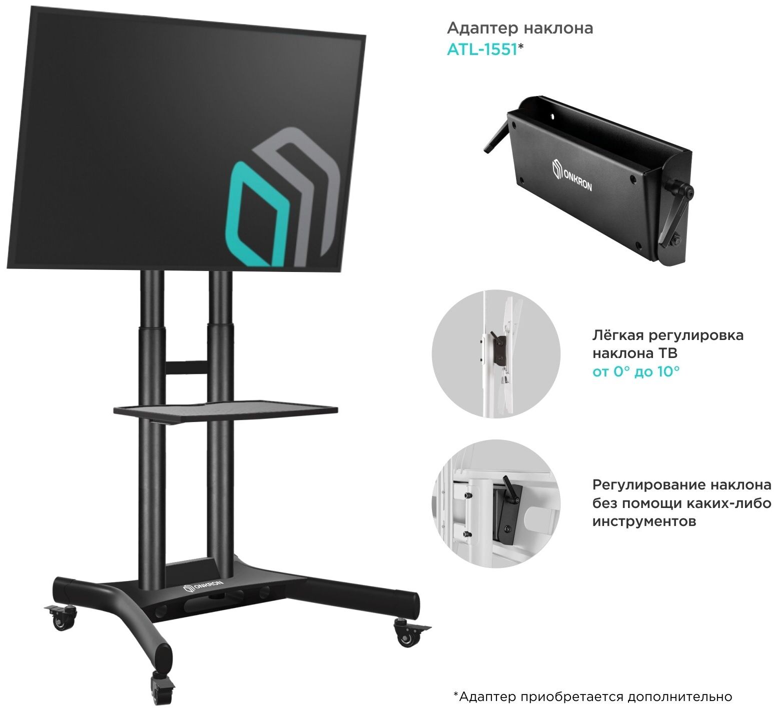Разработана подставка для телевизора ONKRON TS1551 специально для выставочных залов, конференций, выездных мероприятий и учебных аудиторий. Брать ее с собой легко, так как сборка и разборка не требуют специальных знаний и больших физических усилий. Вся опора находится на четырех колесиках, которые вращаются на 360 градусов и позволяют перемещать экран в любом направлении.