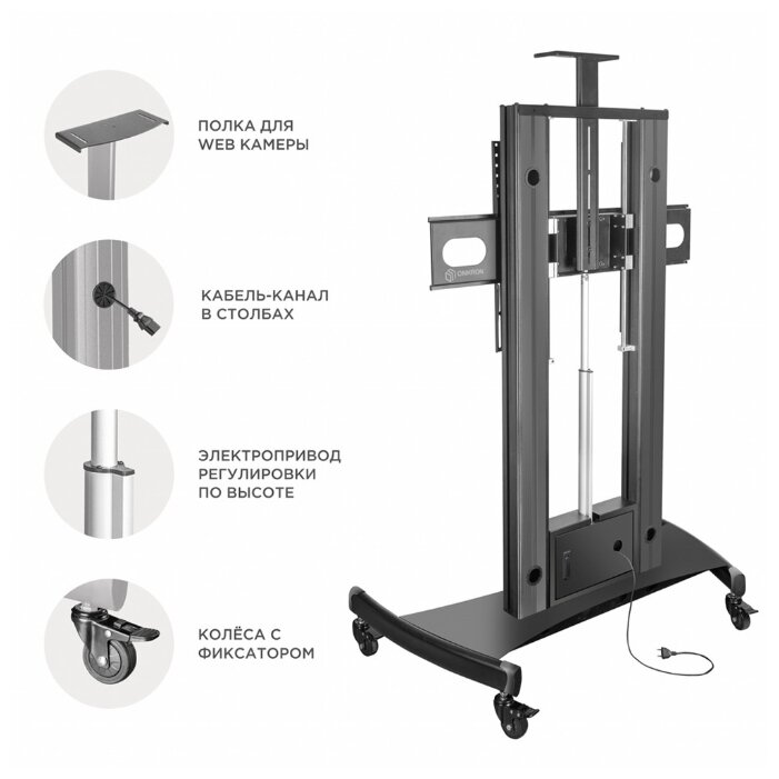 Дополнительная информация: присутствует кабель-канал внутри столбов, пульт ДУ, регулировка высоты: 1230-1723 мм